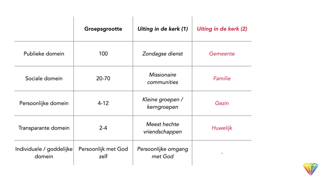 In het boek ‘de diamant van discipelschap’ reflecteer ik met name op groepsgroottes binnen de kerk. De groep van 100 staat voor de kerkdienst op de zondag, de groep van 10 voor de kerngroep en de 1-op-1 is vaak de grote ontbrekende, maar staat voor de meest persoonlijke relatie.